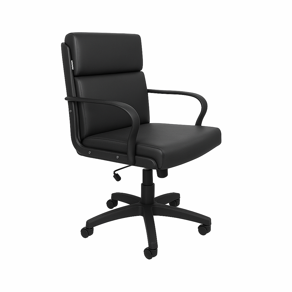 Fauteuil dossier moyen tournant roulant, basculant et réglable en hauteur.